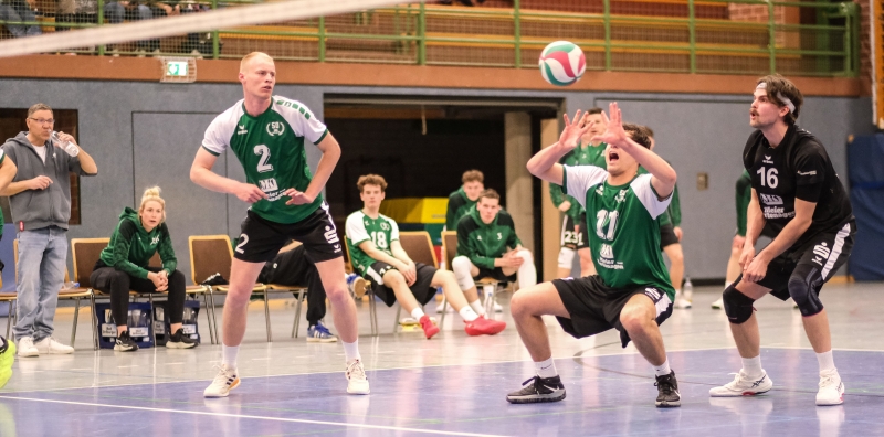 „Wir waren auch in den drei verlorenen Sätzen immer nahe dran, haben uns jedoch stets eine Schwächephase geleistet“, sagte Niklas Hinz. Der verletzte Mittelblocker hatte gemeinsam mit Uli Kussin ein Team betreut, das den ersten Satz nach einem 16:19-Rückstand noch mit 27:25 gewann. Später jedoch setzte sich die größere Routine des Tabellendritten um den früheren Zweitligaakteur und MVP Stephan Massmann durch. Bei Delbrück ging die Auszeichnung für den wertvollsten Akteur an Zuspieler Johannes Grodde.