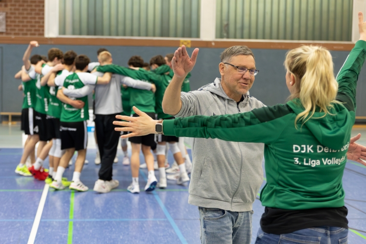 Nach einem 0:6-Rückstand im zweiten Abschnitt aber fand die DJK zu ihrem Spiel, dominierte nun über die Mitte und wehrte zudem viele Lüneburger Angriffe ab. So gelang der Satzausgleich, bevor der dritte Durchgang deutlich an die Gastgeber ging. Im vierten Satz lagen die Lüneburger bis zum 11:9 vorn. Dann aber nahmen die Delbrücker nochmals ihren Mut zusammen und entschieden auch diesen Satz für sich. „Wir haben das dann sehr sauber zu Ende gespielt“, betonte Hinz, der sich auch für die Rückendeckung durch die Fans auf den gut besuchten Rängen in der alten Dreifachhalle am Driftweg bedankte.