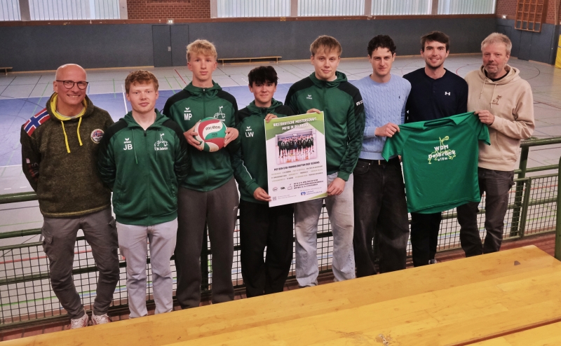 v.l.: Ralf Brese (Fachwart Volleyball), Johannes Butgereit (Orga-Team), Lasse Braun (Spieler U18), Luca Warmus (Orga-Team), Till Grabe (Trainer U18), Justus Hensen (Co-Trainer U18), Niklas Hinz (Orga-Team) und Norbert Brautmeier (1. Vorsitzender DJK Delbrück)